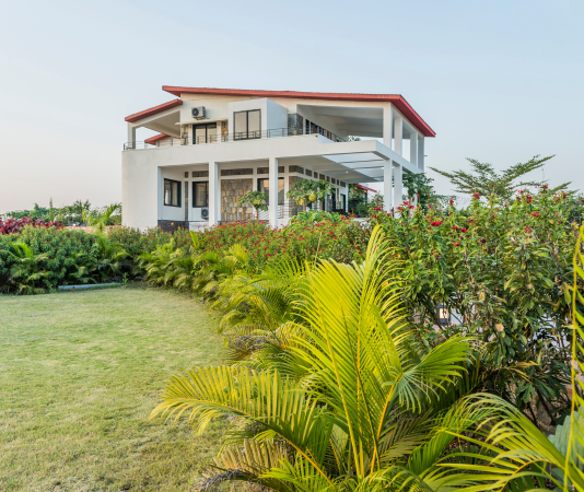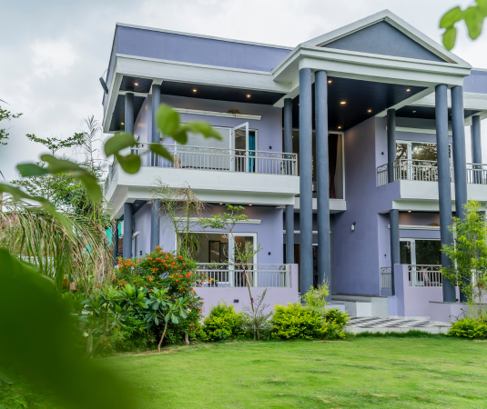 A spacious 4BHK luxury villa surrounded by lush greenery and peaceful vibes.